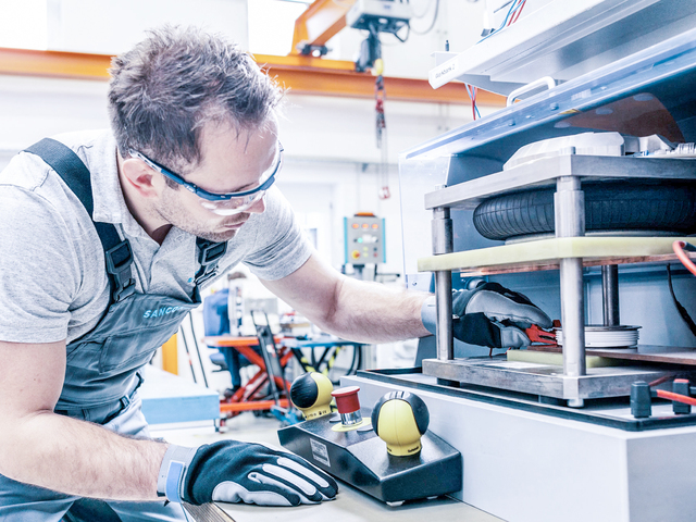 - Vormessung der Scheibenzellen (Sie werden mittels einer Spannvorrichtung, welche eine Presskraft bis zu 40 kN erzeugen kann, auf Nennpresskraft vorgespannt und einer Vormessung unterzogen.)